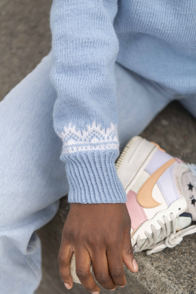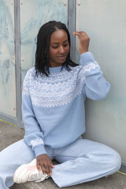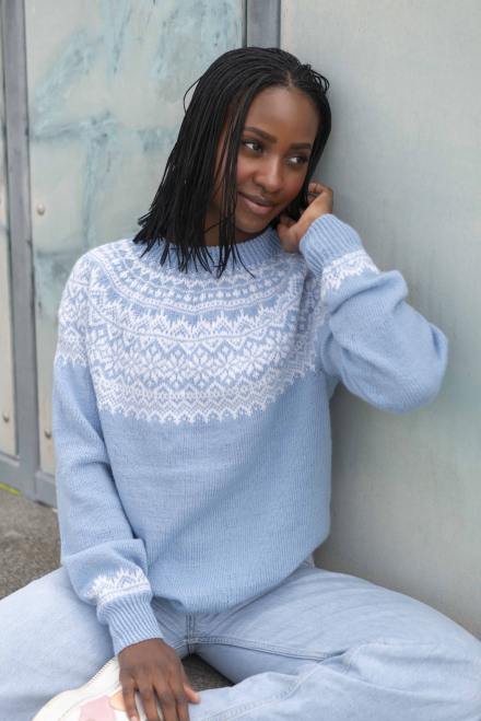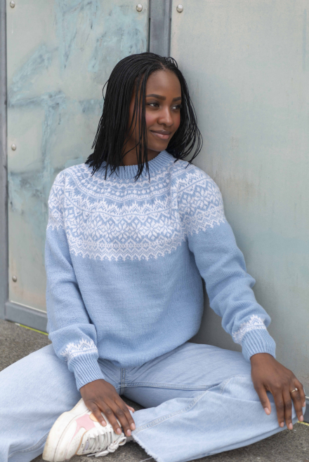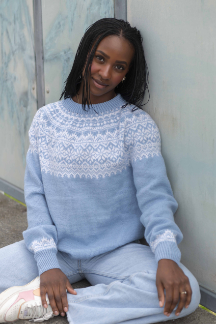 Du kan selv endre farge i strikkepakken ; velg da først størrelsen du ønsker å strikke, så kommer det opp fargevalg nedenfor. NB! Oppskrift vil alltid leveres i strikkepakkens originale farge
