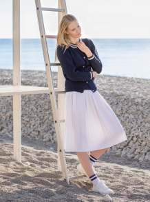 Du finner også informasjon under hvilke strikkepinner og evnt hvilket tilbehør du trenger til dette nydelige plagget.