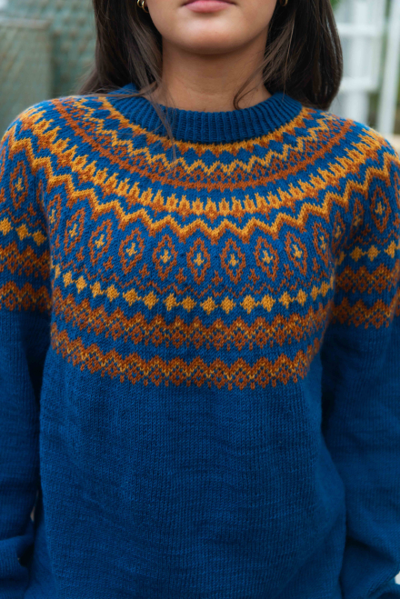Delaware genseren er en nydelig helmønstret genser i vårt nye garn Tynn Merino - et deilig, non-superwashbehandlet garn i mykeste merinoull!