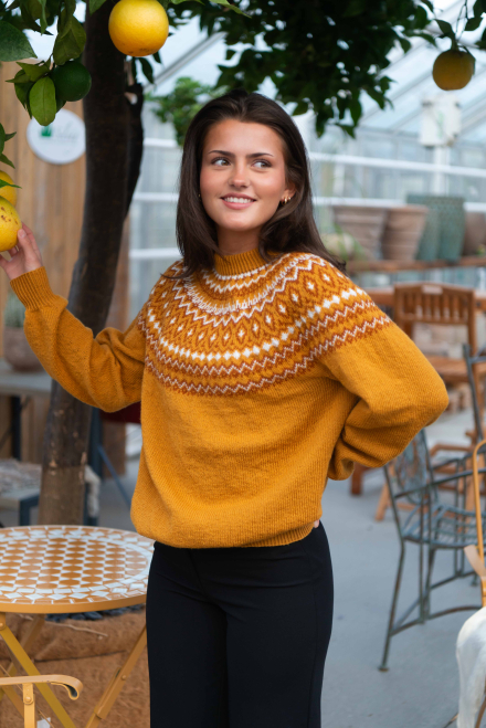 Delaware genseren er en nydelig helmønstret genser i vårt nye garn Tynn Merino - et deilig, non-superwashbehandlet garn i mykeste merinoull!