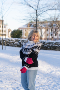 Du kan selv endre farge i strikkepakken ; velg da først størrelsen du ønsker å strikke, så kommer det opp fargevalg nedenfor. NB! Oppskrift vil alltid leveres i strikkepakkens originale farger.