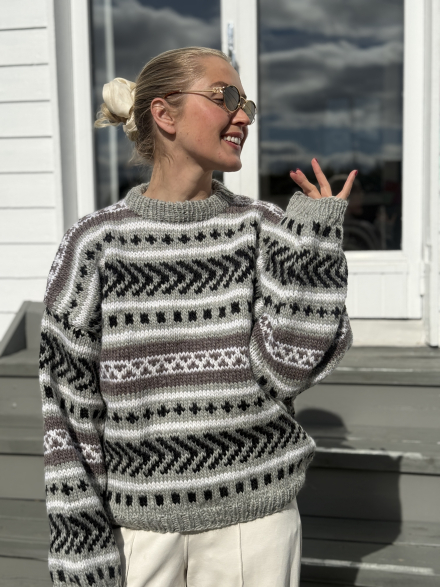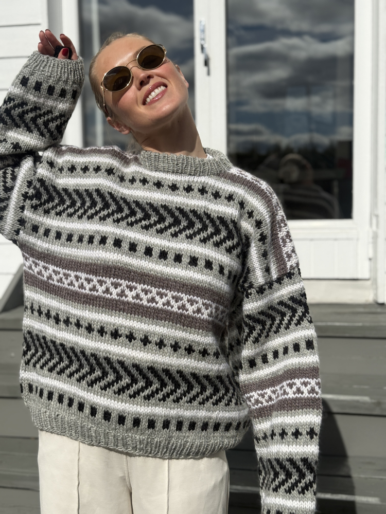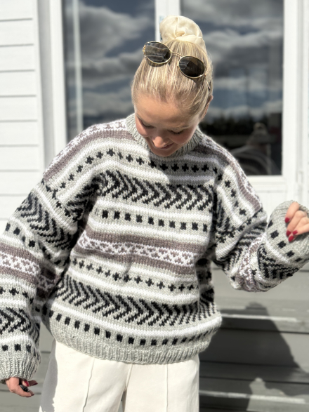 Alle våre strikkepakker inneholder oppskrift og komplett garnforbruk til ønsket størrelse gitt at oppgitte mål og strikkefasthet overholdes. .