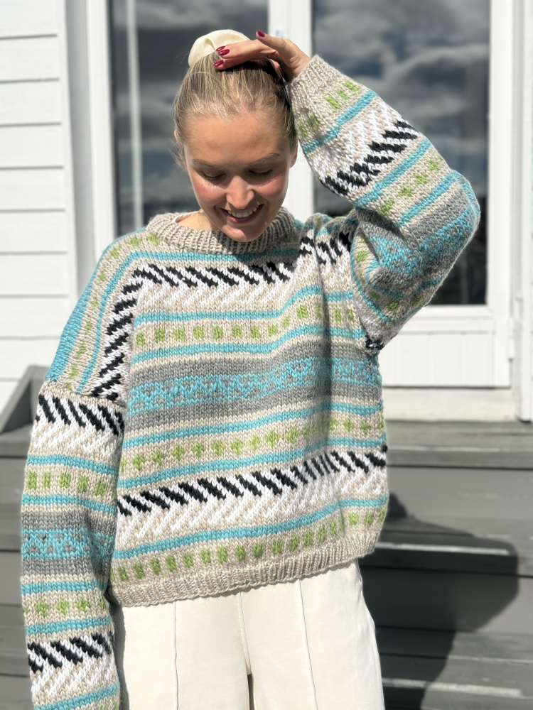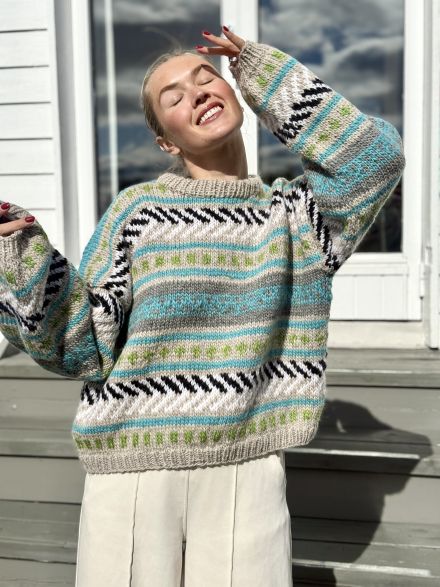 Alle våre strikkepakker inneholder oppskrift og komplett garnforbruk til ønsket størrelse gitt at oppgitte mål og strikkefasthet overholdes. .
