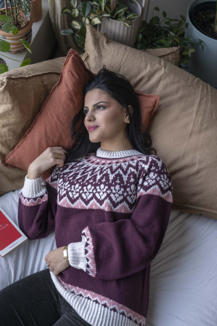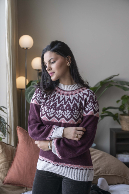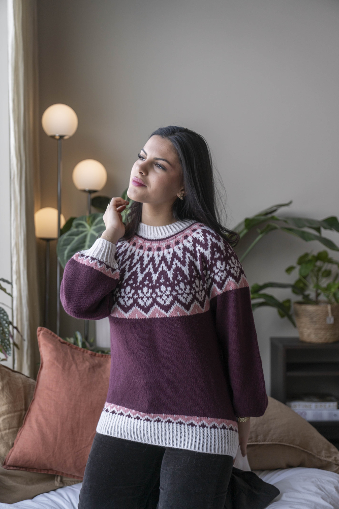 Du kan selv endre farge i strikkepakken ; velg da først størrelsen du ønsker å strikke, så kommer det opp fargevalg nedenfor. NB! Oppskrift vil alltid leveres i strikkepakkens originale farge.