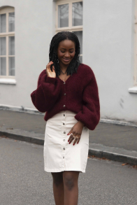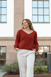 Slik finner du riktig størrelse : Ta mål av et plagg du allerede har, som passer. Sammenlign målene med oppskriften. Velg størrelse ut i fra overvidden på bolen . Lengde på både bol og ermer kan du selvsagt strikke lenger eller kortere ved behov, bare husk å bestill ekstra garn om du vil legge til noe på lengden!