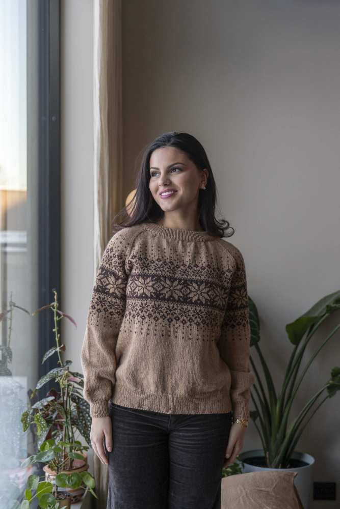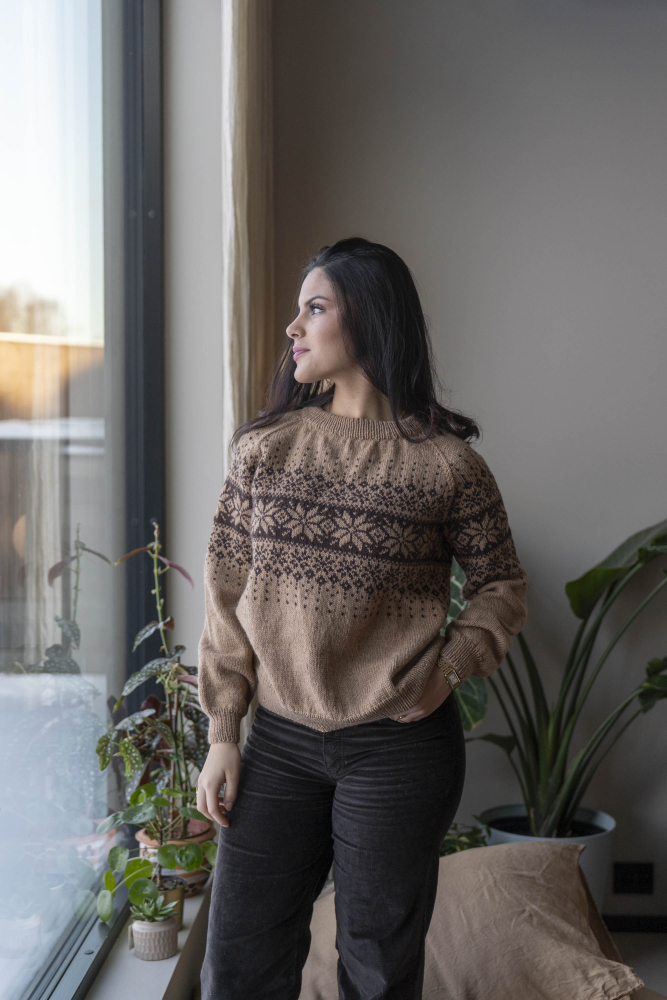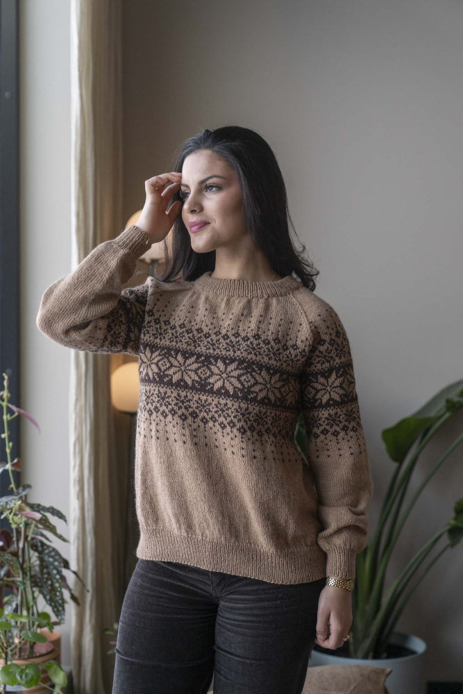 Du kan selv endre farge i strikkepakken ; velg da først størrelsen du ønsker å strikke, så kommer det opp fargevalg nedenfor. NB! Oppskrift vil alltid leveres i strikkepakkens originale farge