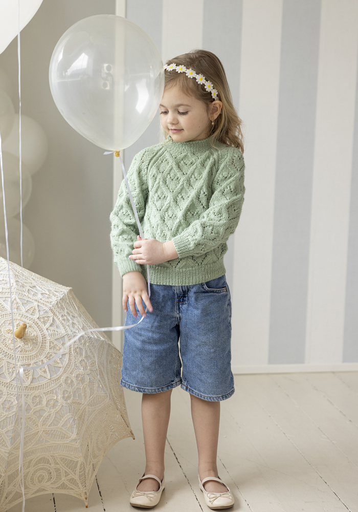 Du kan selv endre farge i strikkepakken ; velg da først størrelsen du ønsker å strikke, så kommer det opp fargevalg nedenfor. NB! Oppskrift vil alltid leveres i strikkepakkens originale farge: Mintgrønn