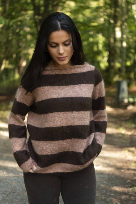 Du kan selv endre farge i strikkepakken ; velg da først størrelsen du ønsker å strikke, så kommer det opp fargevalg nedenfor. NB! Oppskrift vil alltid leveres i strikkepakkens originale farge: Mokka Mousse, Brun, Beige og Mørk Brun