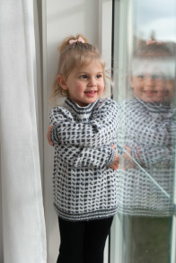 Du kan selv endre farge i strikkepakken ; velg da først størrelsen du ønsker å strikke, så kommer det opp fargevalg nedenfor. NB! Oppskrift vil alltid leveres i strikkepakkens originale farge: Koksgrå og Hvit