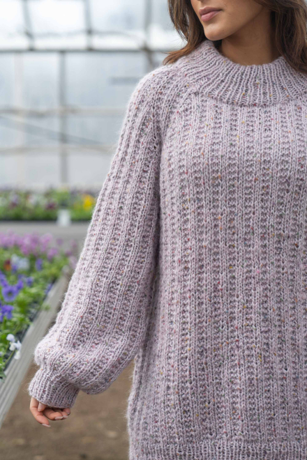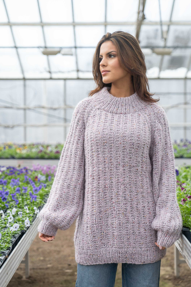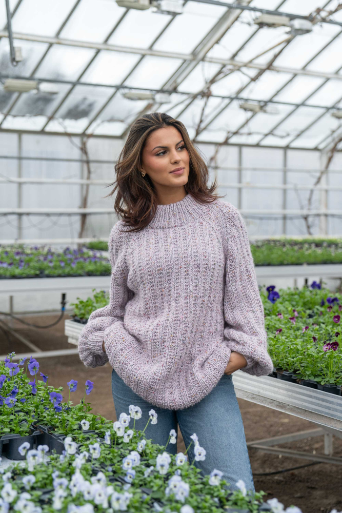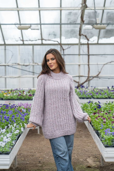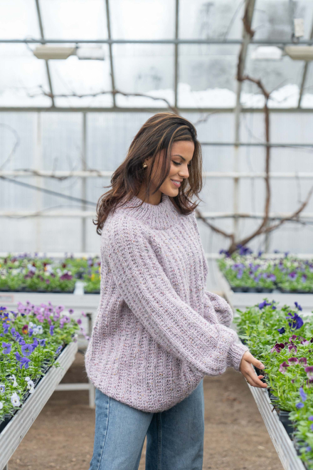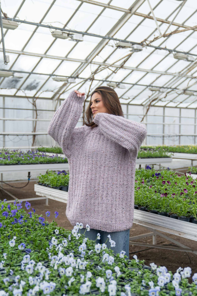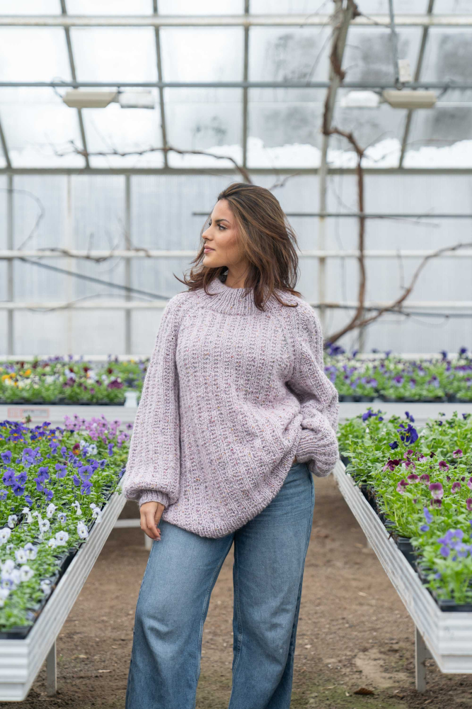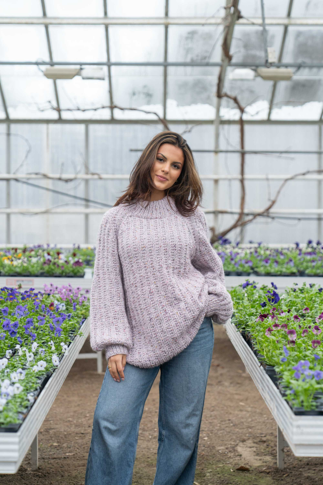 Du kan selv endre farge i strikkepakken ; velg da først størrelsen du ønsker å strikke, så kommer det opp fargevalg nedenfor. NB! Oppskrift vil alltid leveres i strikkepakkens originale farge: Lys Grå og Orkide