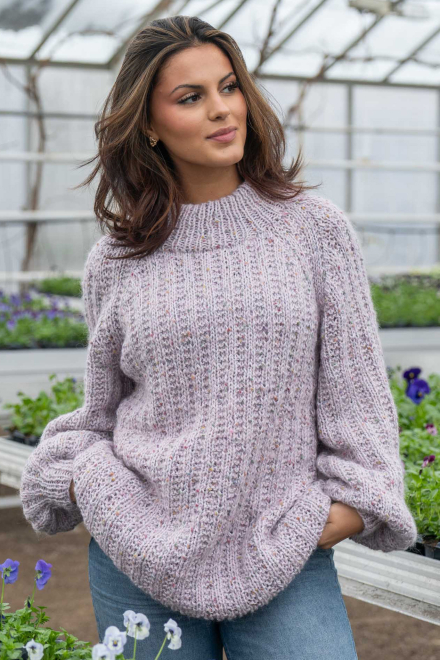 Du kan selv endre farge i strikkepakken ; velg da først størrelsen du ønsker å strikke, så kommer det opp fargevalg nedenfor. NB! Oppskrift vil alltid leveres i strikkepakkens originale farge: Lys Grå og Orkide