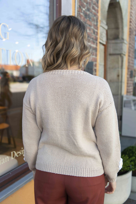 Du kan selv endre farge i strikkepakken ; velg da først størrelsen du ønsker å strikke, så kommer det opp fargevalg nedenfor. NB! Oppskrift vil alltid leveres i strikkepakkens originale farge: Lys Beige, Hvit og Lys Gul