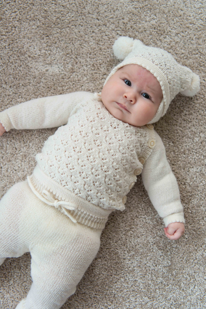 Du kan selv endre farge i strikkepakken ; velg da først størrelsen du ønsker å strikke, så kommer det opp fargevalg nedenfor. NB! Oppskrift vil alltid leveres i strikkepakkens originale farge: Hvit