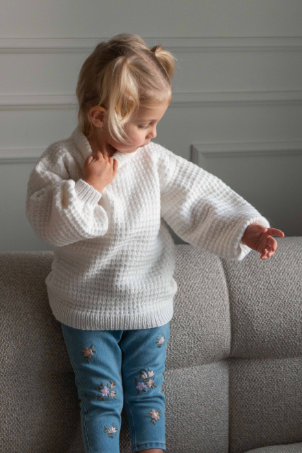 Du kan selv endre farge i strikkepakken ; velg da først størrelsen du ønsker å strikke, så kommer det opp fargevalg nedenfor. NB! Oppskrift vil alltid leveres i strikkepakkens originale farger: Hvit