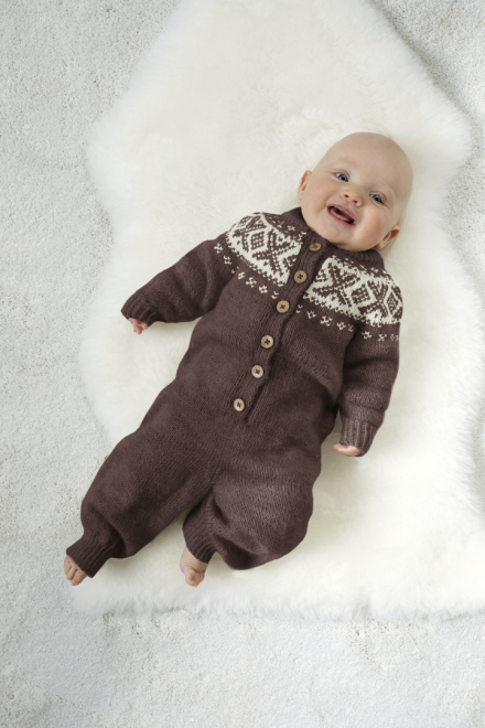 Du kan selv endre farge i strikkepakken ; velg da først størrelsen du ønsker å strikke, så kommer det opp fargevalg nedenfor. NB! Oppskrift vil alltid leveres i strikkepakkens originale farge: Brun og Natur