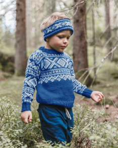 Du kan selv endre farge i strikkepakken ; velg da først størrelsen du ønsker å strikke, så kommer det opp fargevalg nedenfor. NB! Oppskrift vil alltid leveres i strikkepakkens originale farge: Klar Blå og Svart