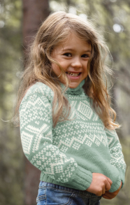 Du kan selv endre farge i strikkepakken ; velg da først størrelsen du ønsker å strikke, så kommer det opp fargevalg nedenfor. NB! Oppskrift vil alltid leveres i strikkepakkens originale farge: Mintgrønn og Pink