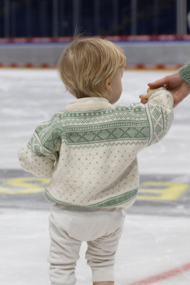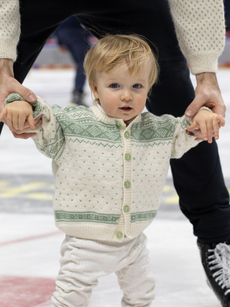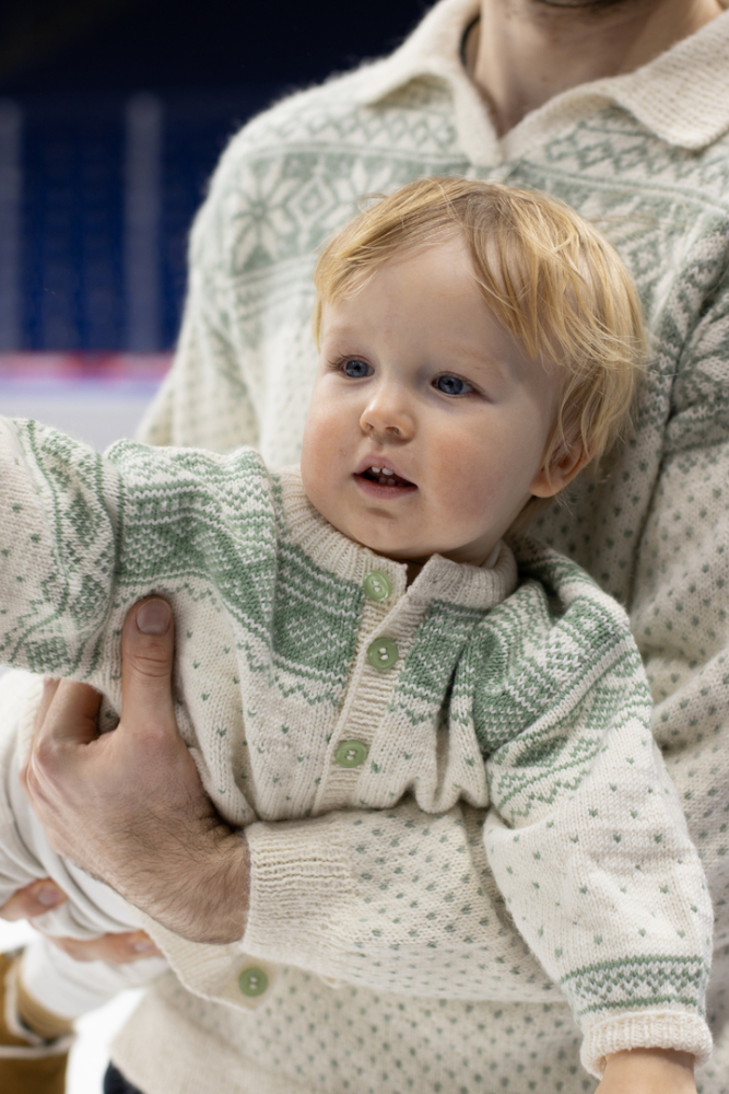 Du kan selv endre farge i strikkepakken ; velg da først størrelsen du ønsker å strikke, så kommer det opp fargevalg nedenfor. NB! Oppskrift vil alltid leveres i strikkepakkens originale farger: Hvit og Dus Jadegrønn