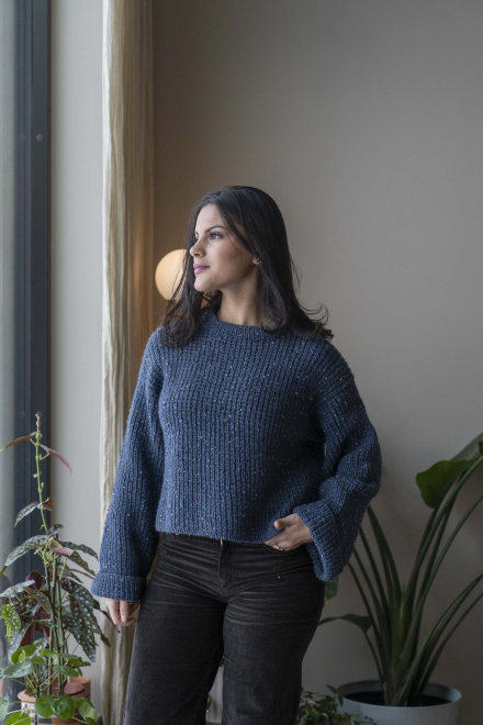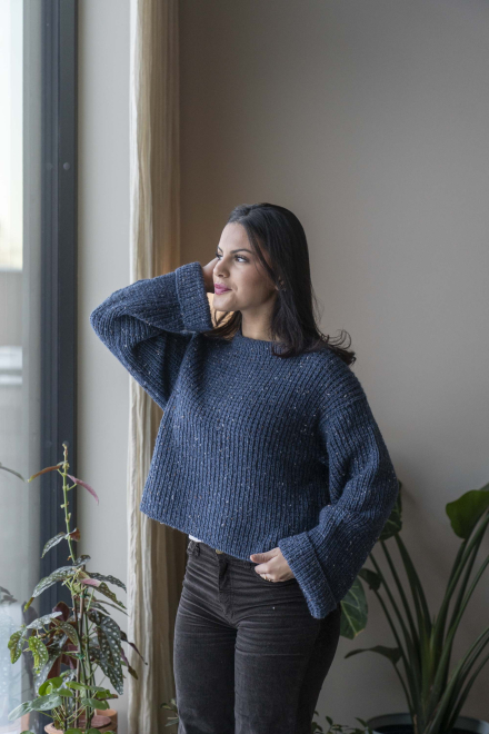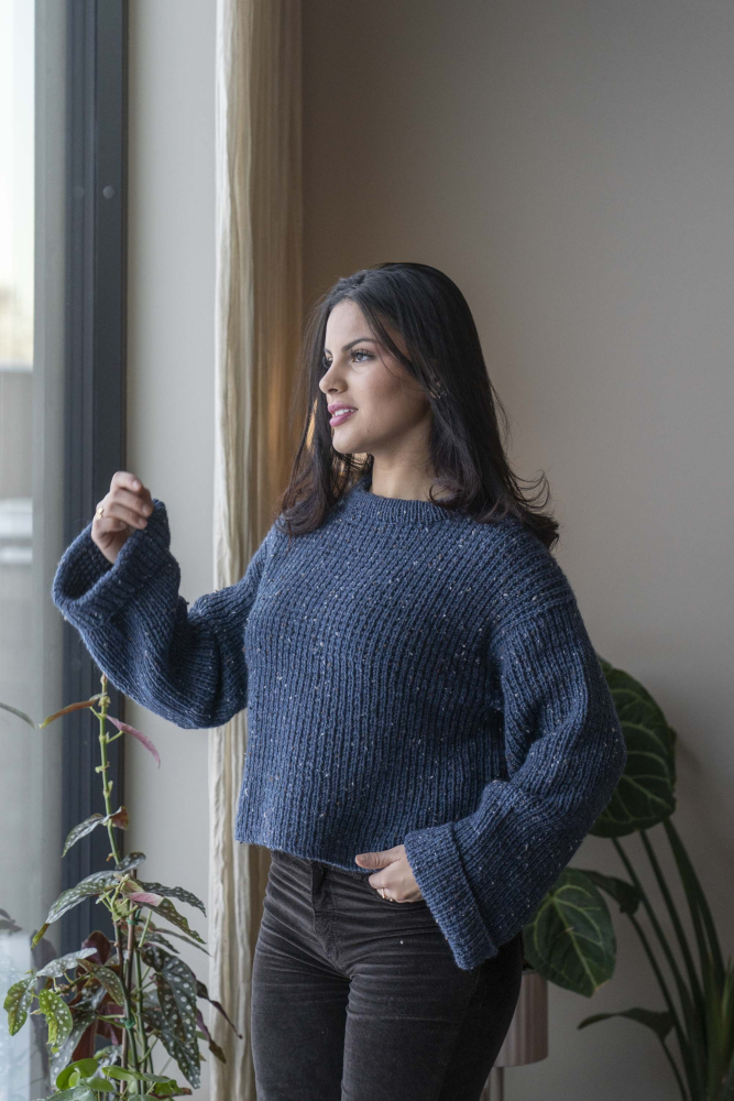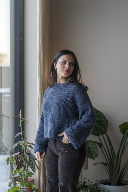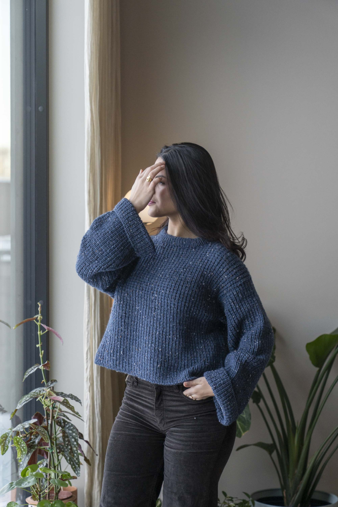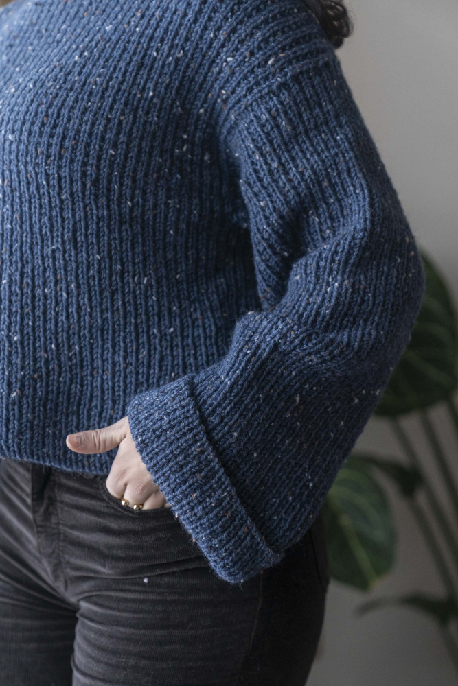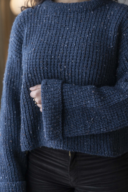 Du kan selv endre farge i strikkepakken ; velg da først størrelsen du ønsker å strikke, så kommer det opp fargevalg nedenfor. NB! Oppskrift vil alltid leveres i strikkepakkens originale farge: Indigo