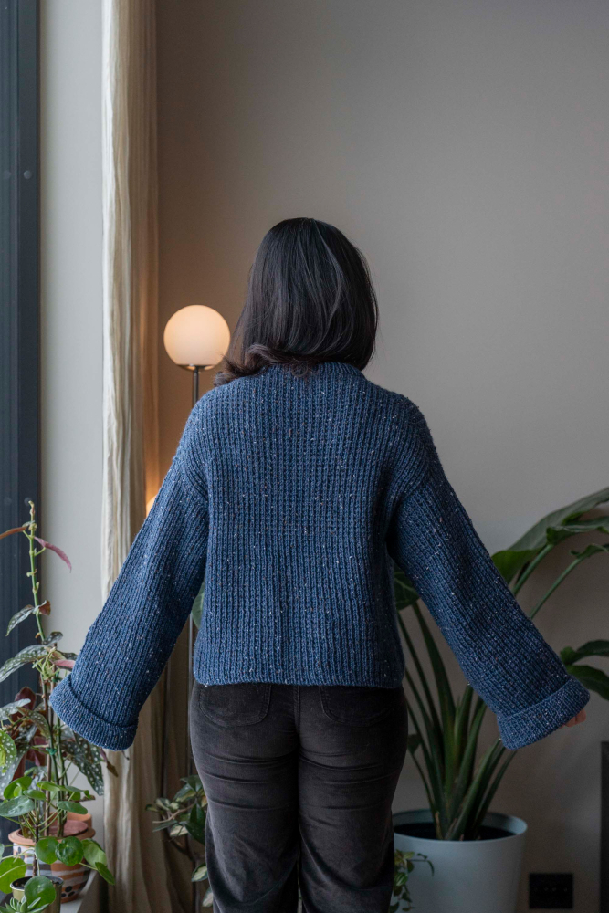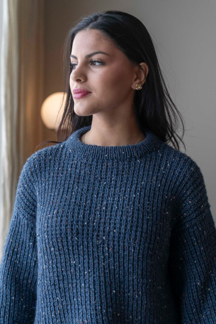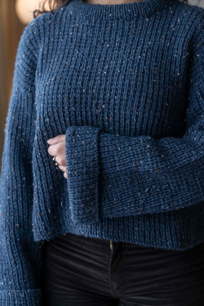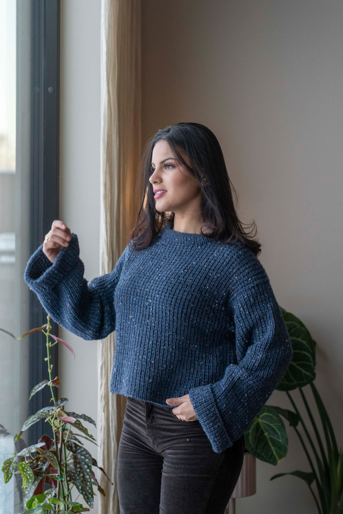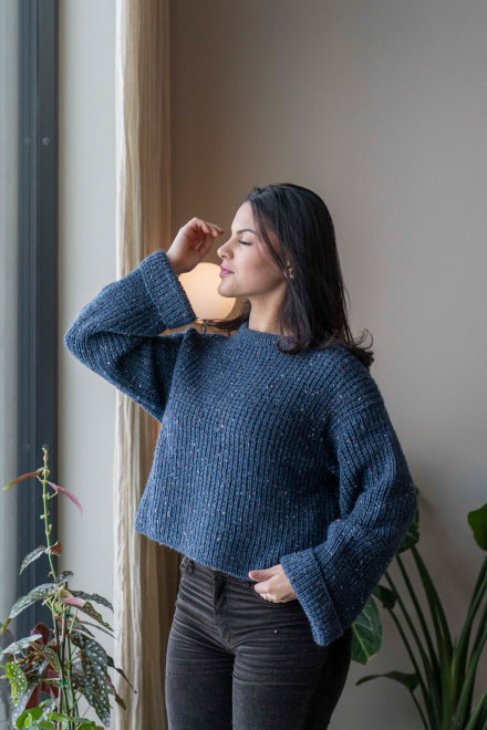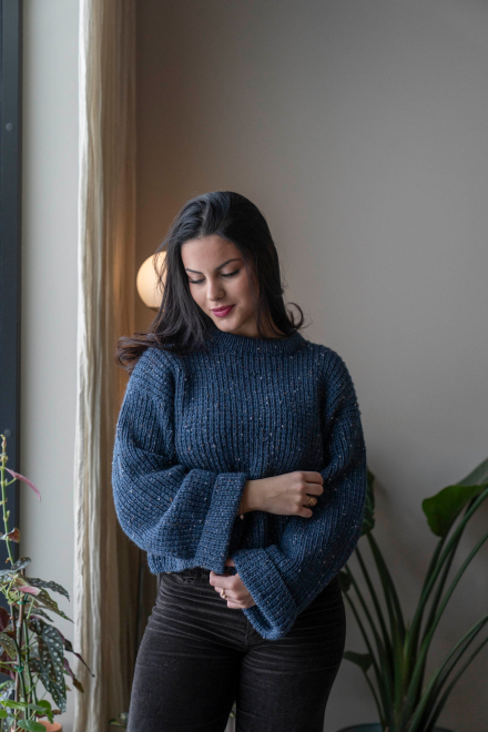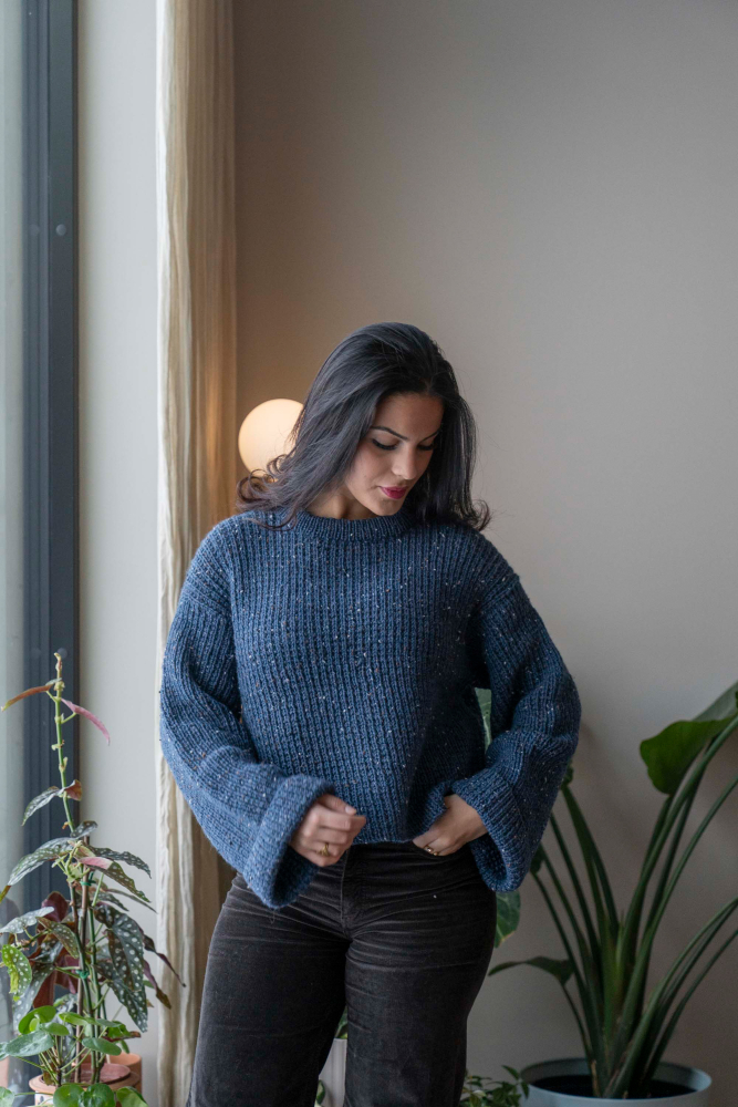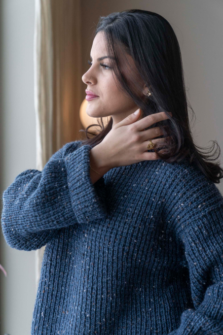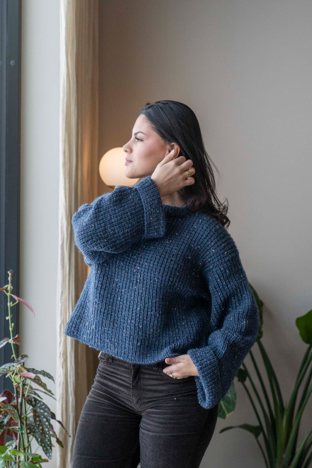 Du kan selv endre farge i strikkepakken ; velg da først størrelsen du ønsker å strikke, så kommer det opp fargevalg nedenfor. NB! Oppskrift vil alltid leveres i strikkepakkens originale farge: Indigo