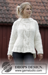 DROPS Frosty Cables sett med pute og pledd strikket flettemønster i "Polaris"