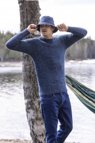 Du kan selv endre farge i strikkepakken ; velg da først størrelsen du ønsker å strikke, så kommer det opp fargevalg nedenfor. NB! Oppskrift vil alltid leveres i strikkepakkens originale farger: Indigo og Natur