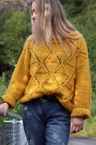 DOLOMITT er en nydelig , tradisjonmønstret genser i mykeste Faerytale. Fluffy og god , men uten mohair - her er det børstet alpakka som gir den nydelige glorien. Genseren strikkes nedenfra og opp, med rundfelt bærestykke. Et must i enhver strikket garderobe !