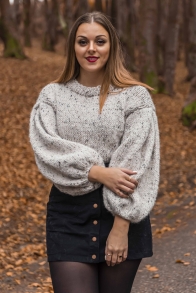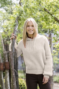 Slik finner du riktig størrelse : Ta mål av et plagg du allerede har, som passer. Sammenlign målene med oppskriften. Velg størrelse ut i fra overvidden på bolen . Lengde på både bol og ermer kan du selvsagt strikke lenger eller kortere ved behov, bare husk å bestill ekstra garn om du vil legge til noe på lengden!