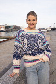 Du kan selv endre farge i strikkepakken ; velg da først størrelsen du ønsker å strikke, så kommer det opp fargevalg nedenfor. NB! Oppskrift vil alltid leveres i strikkepakkens originale farger; Natur, Kongeblå og Kongeblå