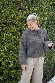 Du kan selv endre farge i strikkepakken ; velg da først størrelsen du ønsker å strikke, så kommer det opp fargevalg nedenfor. NB! Oppskrift vil alltid leveres i strikkepakkens originale farger: Rustgrå og Muldvarp