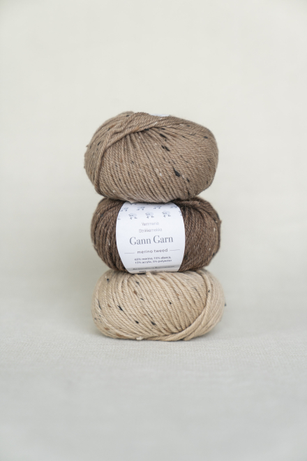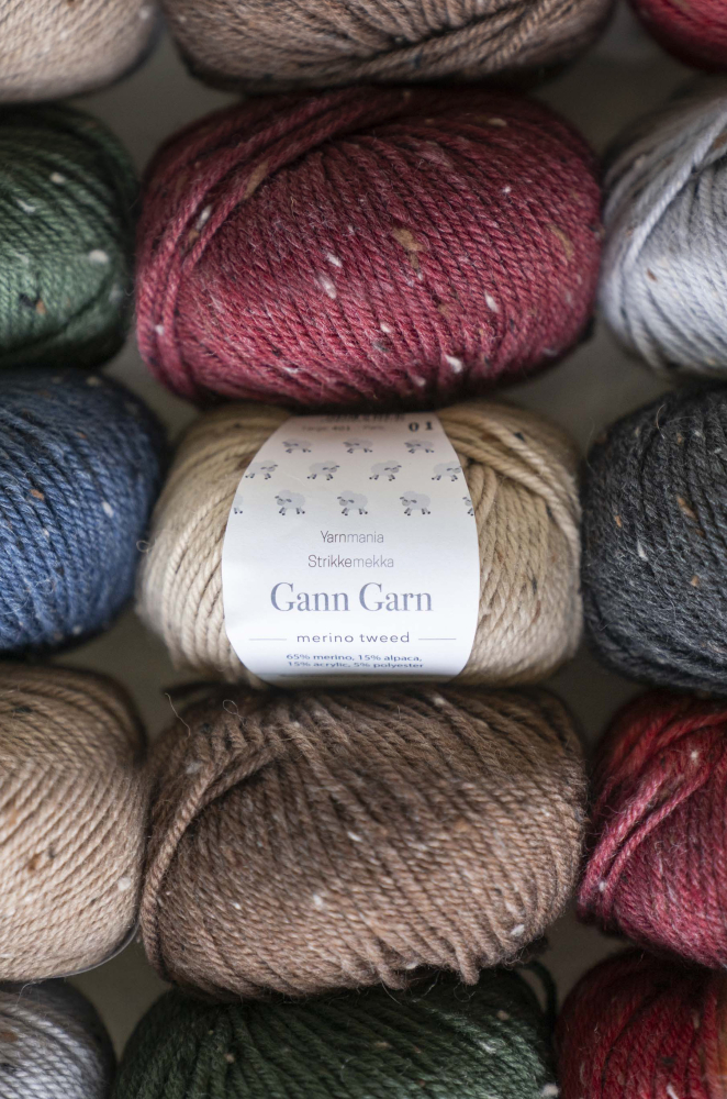Merino Tweed er et nytt, mellomtykt garn med rustikt preg. Med høyt innhold av både merinoull og alpakka vil dette garnet føles mykt og deilig ved bruk. Det er formstabilt og godt å strikke med, og egner seg svært godt til plagg og tilbehør til både barn, ungdom og voksne.