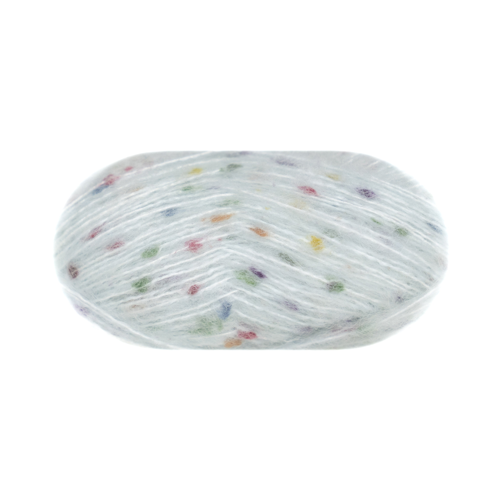 Tutti Frutti er et spennende og annerledes effektgarn med uendelige muligheter!  Det kan strikkes alene med enkel eller dobbel tråd, eller legges til som effekttråd sammen med f.eks Gann Garn Tynn Merino eller Gann Garn Bliss for et helt unikt uttrykk. Tutti Frutti er mykt og smidig, og garnet glir godt på pinnene. Forsterket med både polyester og akryl, sammen med mohair og ull er det både varmt og slitesterkt.