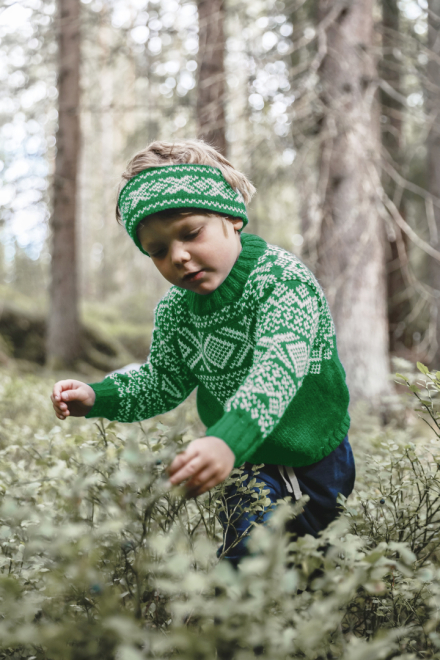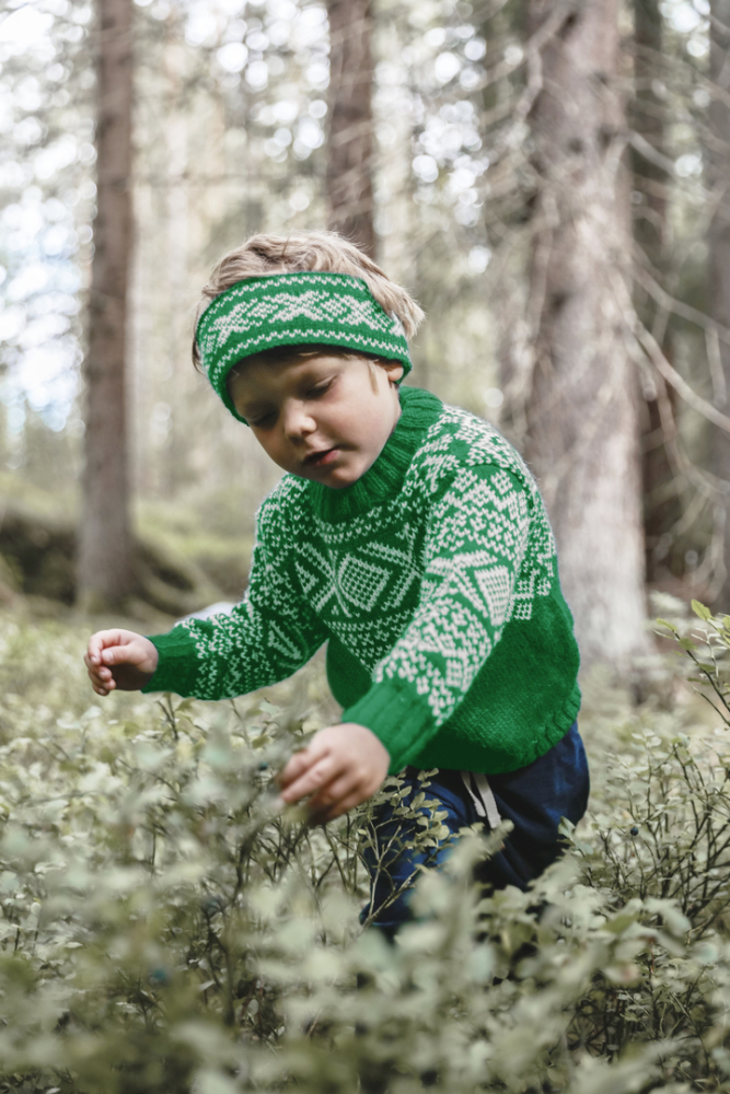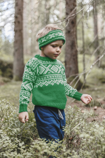 Du kan selv endre farge i strikkepakken ; velg da først størrelsen du ønsker å strikke, så kommer det opp fargevalg nedenfor. NB! Oppskrift vil alltid leveres i strikkepakkens originale farge: Skarp Grønn og Hvit
