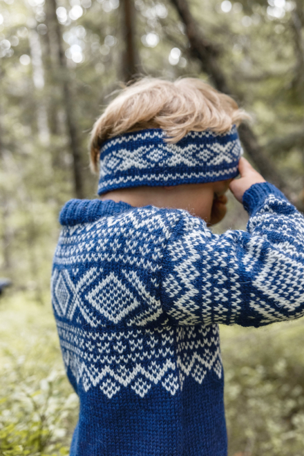 Du kan selv endre farge i strikkepakken ; velg da først størrelsen du ønsker å strikke, så kommer det opp fargevalg nedenfor. NB! Oppskrift vil alltid leveres i strikkepakkens originale farge: Kongeblå og Hvit