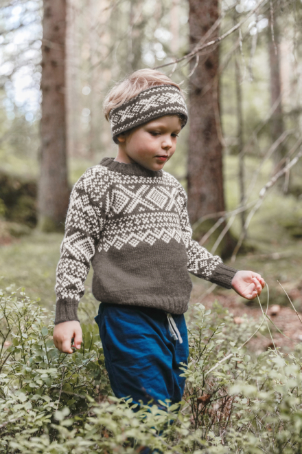 Du kan selv endre farge i strikkepakken ; velg da først størrelsen du ønsker å strikke, så kommer det opp fargevalg nedenfor. NB! Oppskrift vil alltid leveres i strikkepakkens originale farge: Muldvarp og Hvit