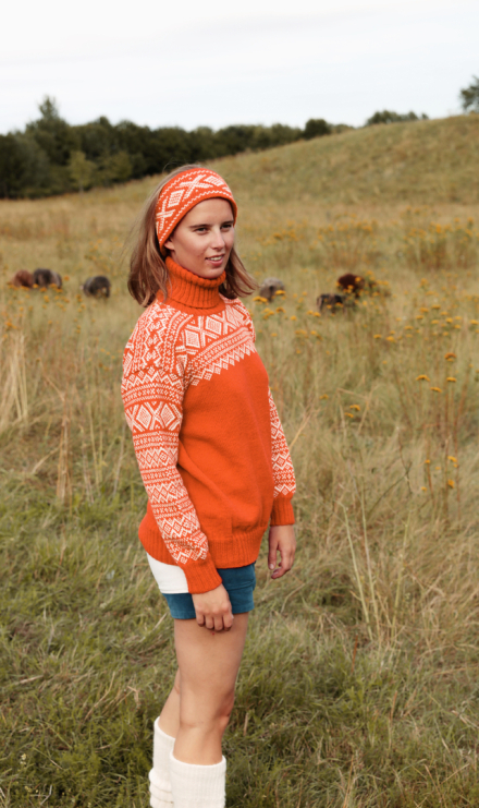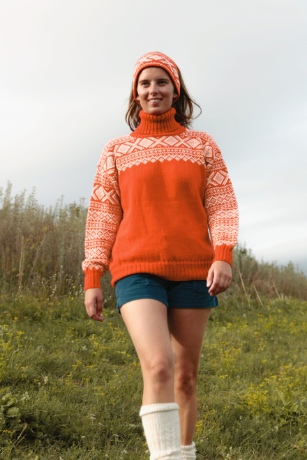 Du kan selv endre farge i strikkepakken ; velg da først størrelsen du ønsker å strikke, så kommer det opp fargevalg nedenfor. NB! Oppskrift vil alltid leveres i strikkepakkens originale farge: Oransje og Hvit