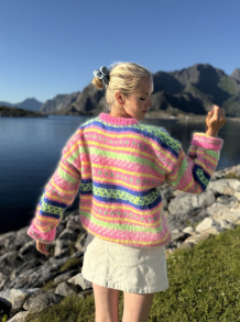Du kan selv endre farge i strikkepakken ; velg da først størrelsen du ønsker å strikke, så kommer det opp fargevalg nedenfor. NB! Oppskrift vil alltid leveres i strikkepakkens originale farger: Neongul, Hvit, Neonrosa og Neongrønn