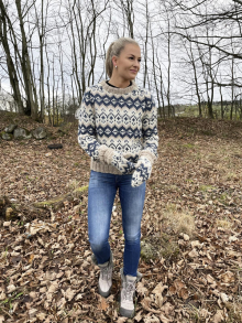 Du kan selv endre farge i strikkepakken ; velg da først størrelsen du ønsker å strikke, så kommer det opp fargevalg nedenfor. NB! Oppskrift vil alltid leveres i strikkepakkens originale farger. NB! Oppskrift leveres i original farge