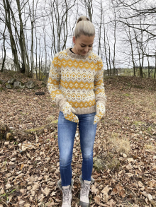 Du kan selv endre farge i strikkepakken ; velg da først størrelsen du ønsker å strikke, så kommer det opp fargevalg nedenfor. NB! Oppskrift vil alltid leveres i strikkepakkens originale farger. NB! Oppskrift leveres i original farge