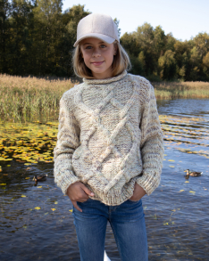 Du kan selv endre farge i strikkepakken ; velg da først størrelsen du ønsker å strikke, så kommer det opp fargevalg nedenfor. NB! Oppskrift vil alltid leveres i strikkepakkens originale farge: Sahara Print