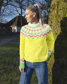 Alle våre strikkepakker inneholder oppskrift og komplett garnforbruk til ønsket størrelse gitt at oppgitte mål og strikkefasthet overholdes. OBS! Strikkepinner, knapper og annet tilbehør må kjøpes separat.