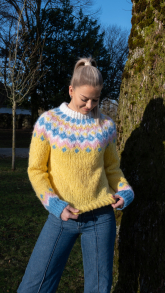 Du kan selv endre farge i strikkepakken ; velg da først størrelsen du ønsker å strikke, så kommer det opp fargevalg nedenfor. NB! Oppskrift vil alltid leveres i strikkepakkens originale farge: Hvit, Kitt, Beige, Lys Gul, Rosa, Mintgrønn, Skarp Grønn, Isblå, Lys Lavendel, Turkis, Pastellrosa/Grønn/Gul Gradert, Blå/lavendel/turkis Gradert, Gull.