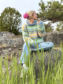 Du kan selv endre farge i strikkepakken ; velg da først størrelsen du ønsker å strikke, så kommer det opp fargevalg nedenfor. NB! Oppskrift vil alltid leveres i strikkepakkens originale farger: Light Lavender, Soft Pink, White, Fuchsia, Light Yellow og Purple Mix