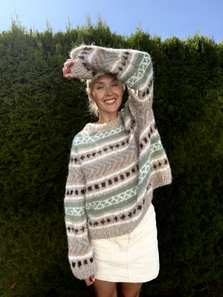 Alle våre strikkepakker inneholder oppskrift og komplett garnforbruk til ønsket størrelse gitt at oppgitte mål og strikkefasthet overholdes. .