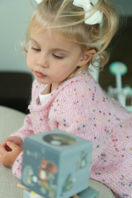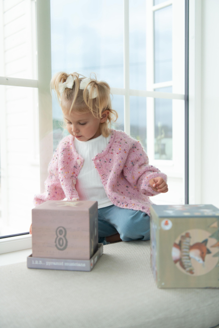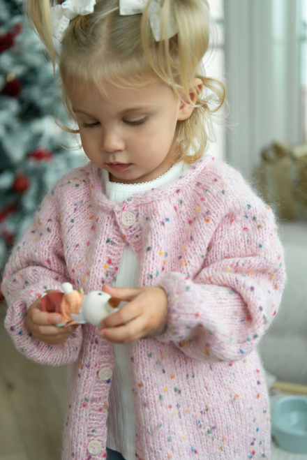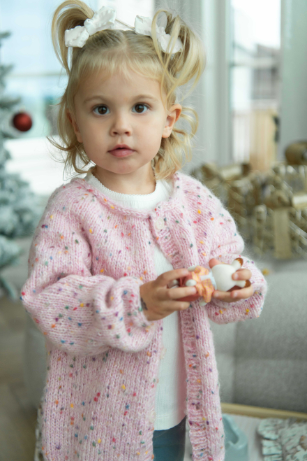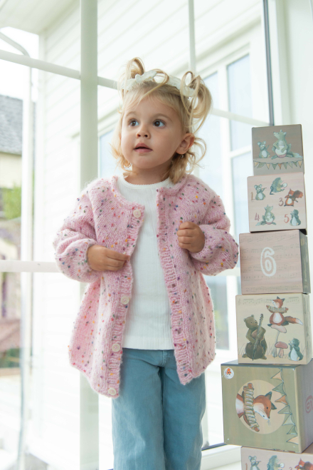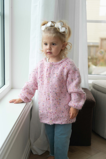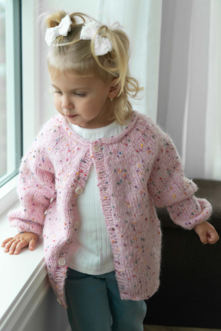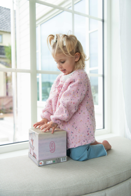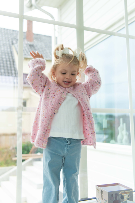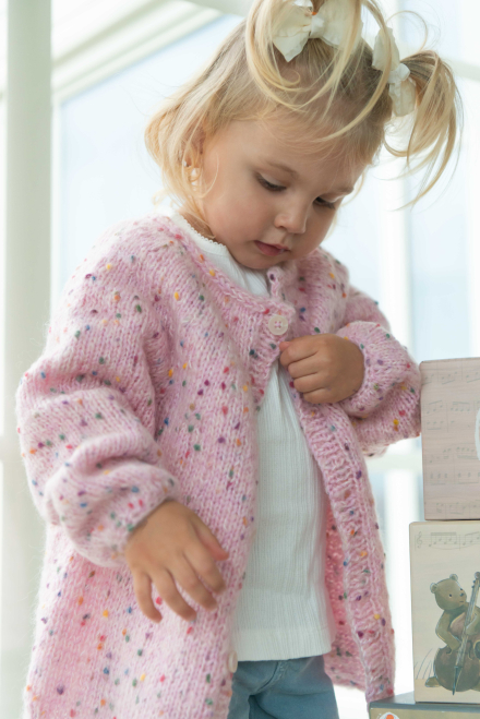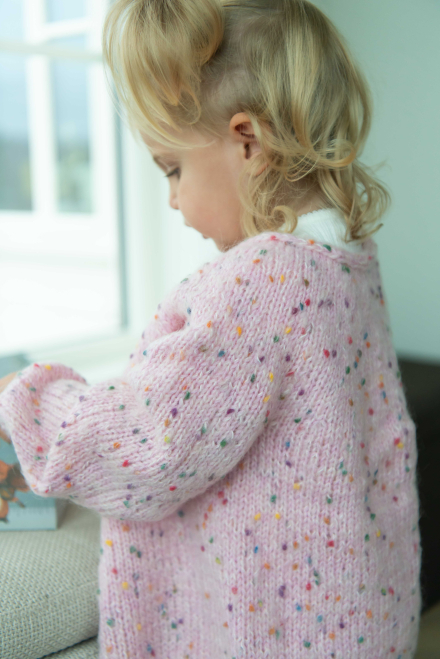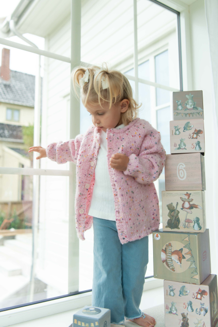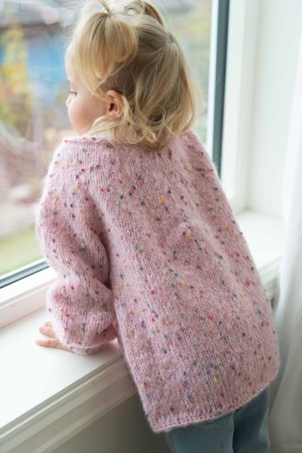 Du kan selv endre farge i strikkepakken ; velg da først størrelsen du ønsker å strikke, så kommer det opp fargevalg nedenfor. NB! Oppskrift vil alltid leveres i strikkepakkens originale farge: Rosa Tåke og Lys Rosa
