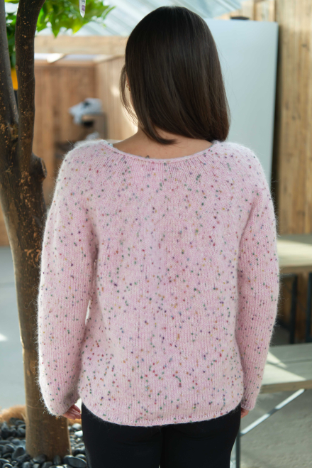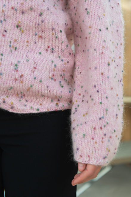 Du kan selv endre farge i strikkepakken ; velg da først størrelsen du ønsker å strikke, så kommer det opp fargevalg nedenfor. NB! Oppskrift vil alltid leveres i strikkepakkens originale farge: Rosa Tåke og Lys Rosa