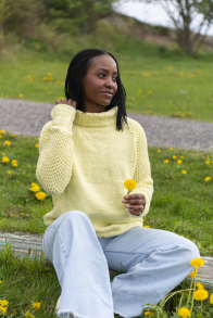 Du kan selv endre farge i strikkepakken ; velg da først størrelsen du ønsker å strikke, så kommer det opp fargevalg nedenfor. NB! Oppskrift vil alltid leveres i strikkepakkens originale farge: Lys Gul