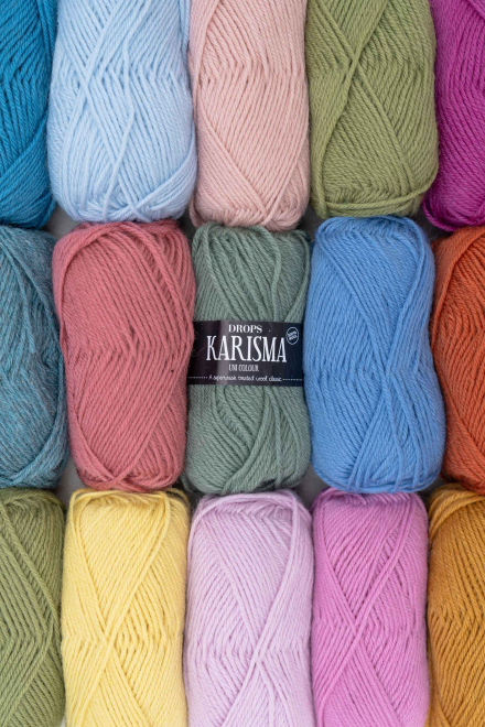 10 nøster Drops Karisma, med tilfeldig sammensatte farger og partinummer. Kanskje alle er like, kanskje alle er forskjellige. Tør du ta sjansen og se hva som venter i din lykkepose?