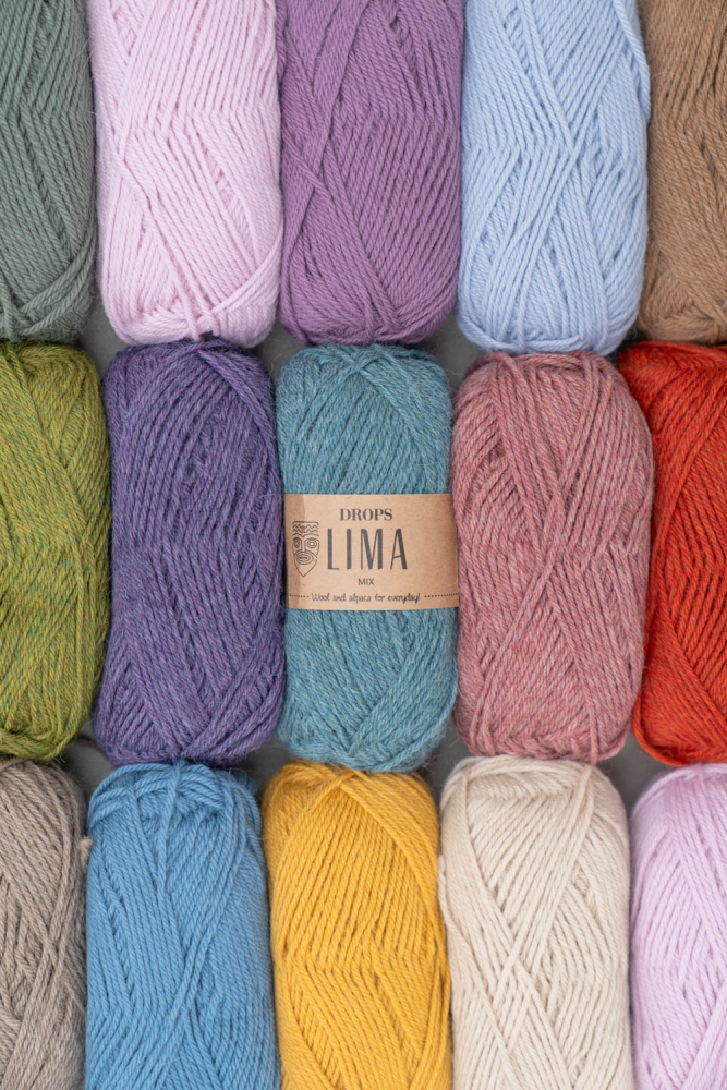 10 nøster Drops Lima, med tilfeldig sammensatte farger og partinummer. Kanskje alle er like, kanskje alle er forskjellige. Tør du ta sjansen og se hva som venter i din lykkepose?
