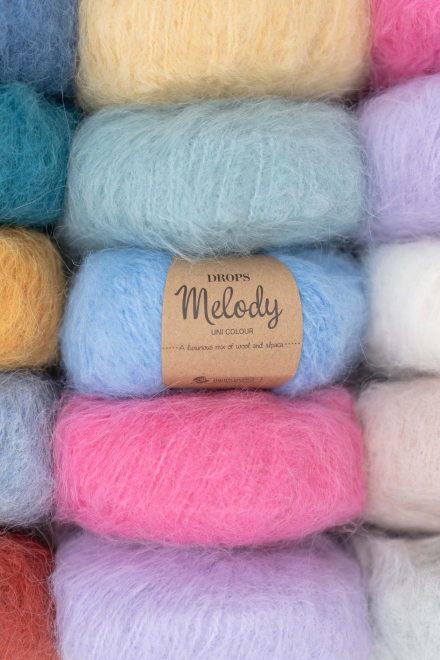 10 nøster Drops Melody, med tilfeldig sammensatte farger og partinummer. Kanskje alle er like, kanskje alle er forskjellige. Tør du ta sjansen og se hva som venter i din lykkepose?